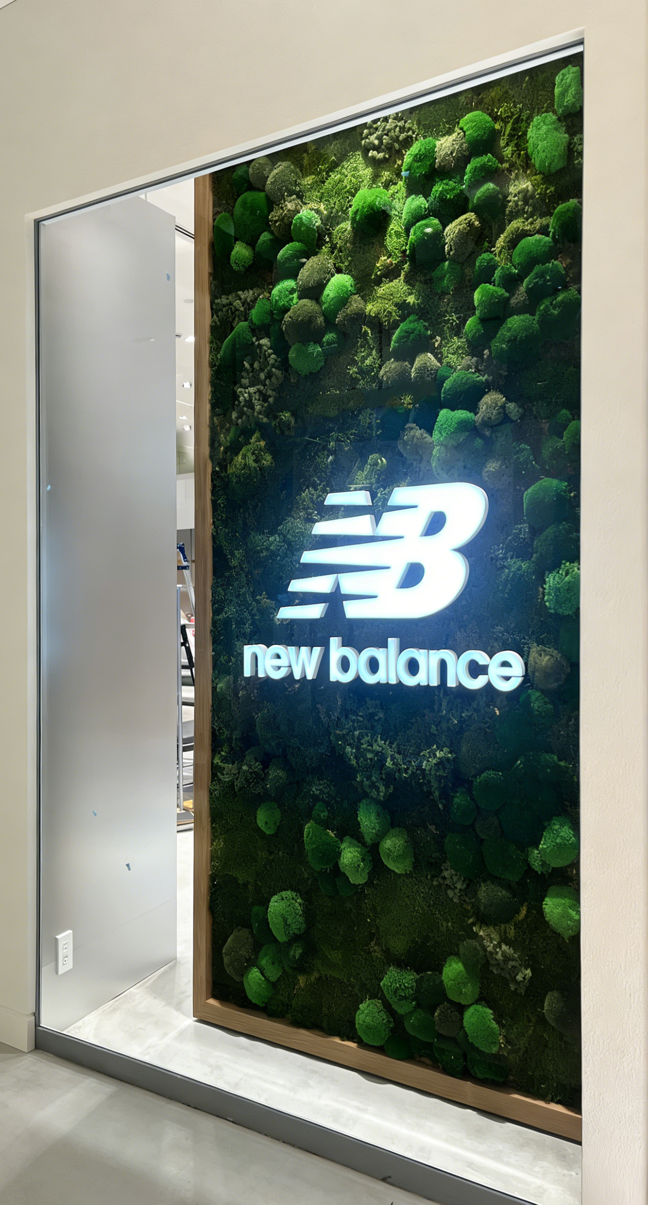 木目調パネルとサイン、グリーンの相性が良く素敵に仕上がりました