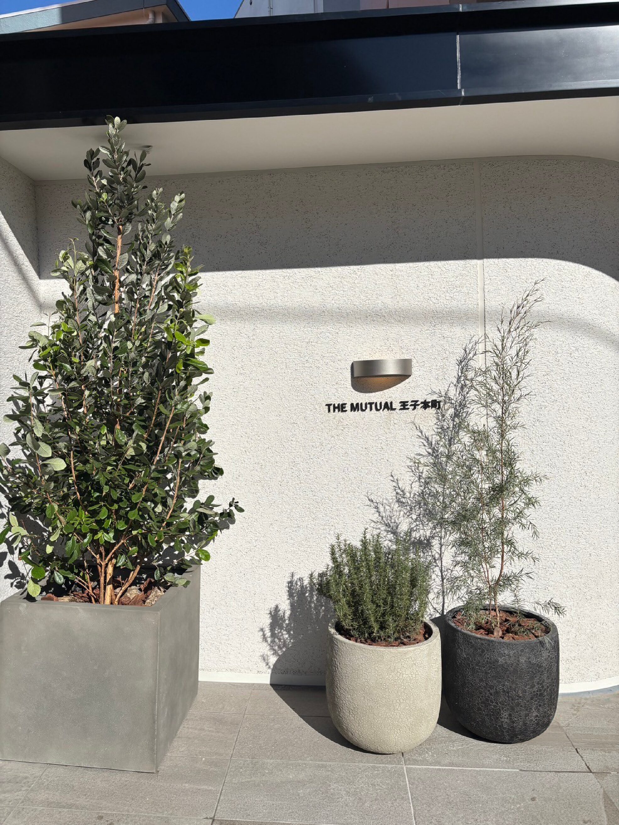 今回は、手入れ不要で美しさを維持するフェイクグリーンを採用。常に訪れる人を迎える場所だからこそ、季節を問わず美しい緑が保たれることを大切にしました。