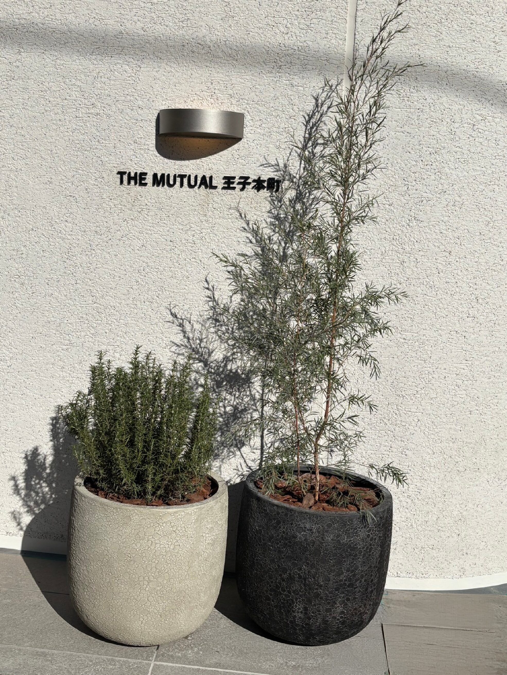 異なるサイズとデザインのプランターを組み合わせることで、自然な立体感を演出。